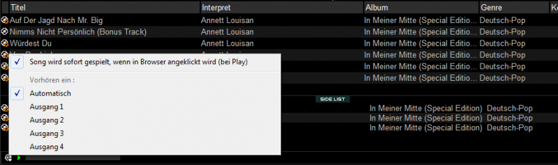 2. Ich möchte im Songbrowser die Musik vorhören können. Muss ich dazu den Boothausgang benutzen? Oder funktioniert das anders?