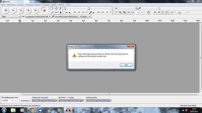 Und wie gehts bei Audacity? Was muß da eingestellt werden ? Habs gerade mal probiert und hab folgende Meldung bekommen: