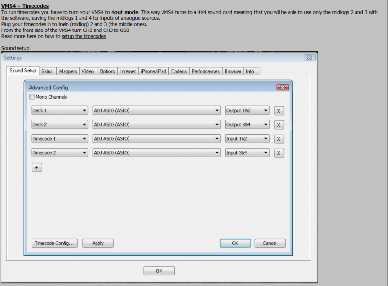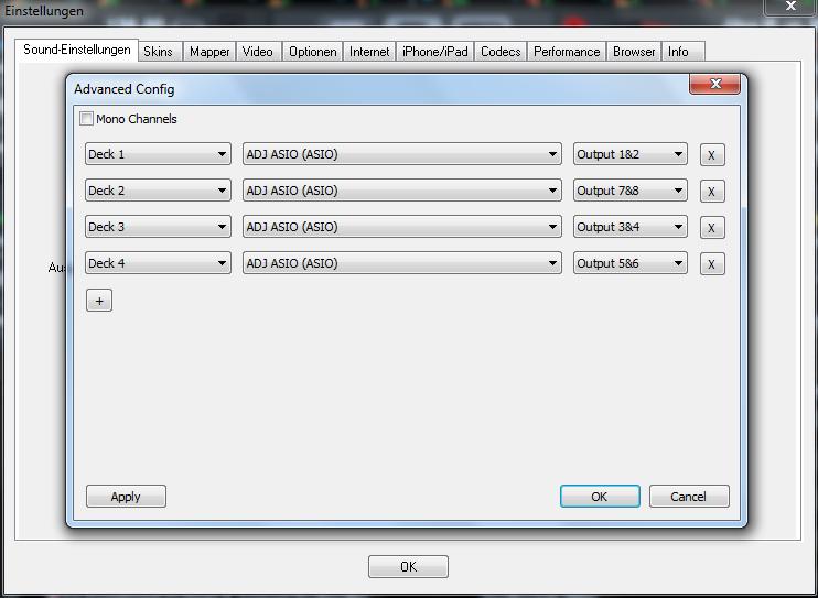 Was muss ich nun tun, damit ich ich auf Deck 1 und 2 (sollen dann CH1 und CH4 sein) jeweils die Timecode-Vinyls (mit ext. Soundkarte Audio 4 Dj) habe und Deck 3 und 4 (sollen dann CH2 und CH3 sein) den normalen Midi Betrieb habe?