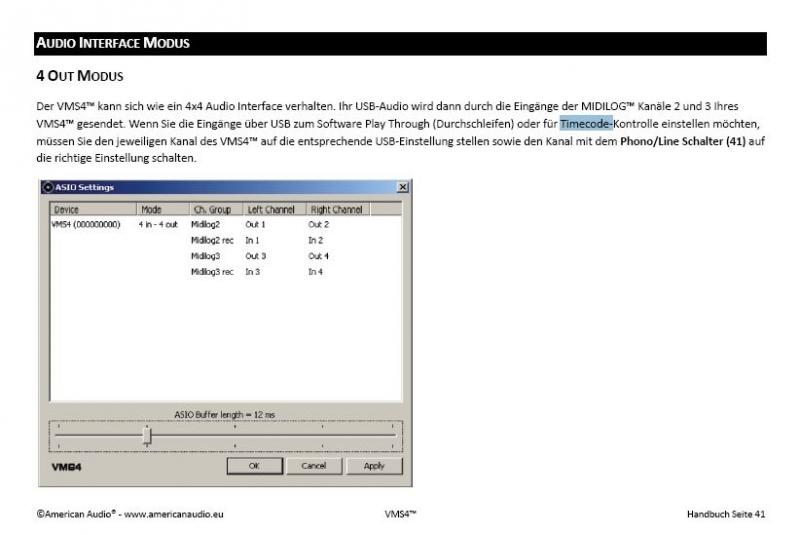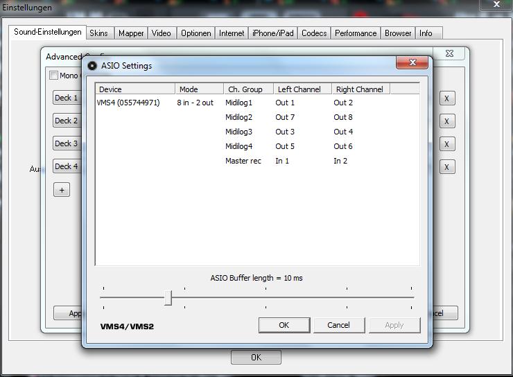 Oder du machst genau das mit der VMS4 und dessen Soundkarte und vergisst die Audio 4 DJ. Denn genau das verwirrt dich bei der Config.