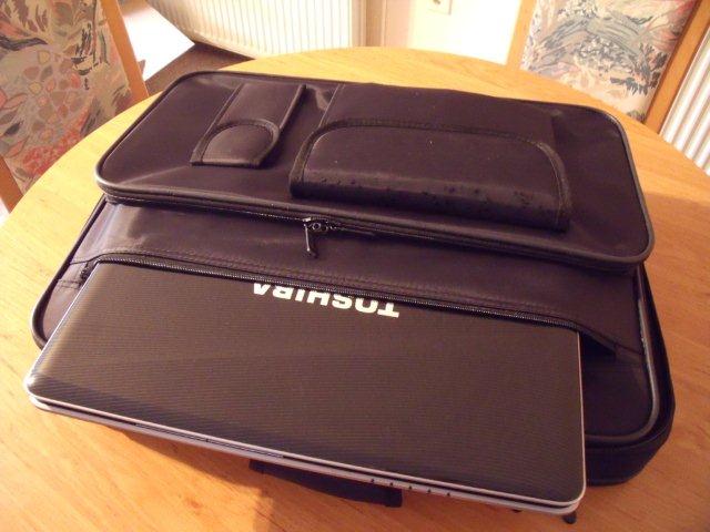 Sogar mein 17´ Breitbild-Toshi passt dann noch vorne in eines der Fächer: