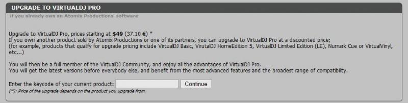 (for example, products that qualify for upgrade pricing include VirtualDJ Basic, VirutalDJ HomeEdition 5, VirtualDJ Limited Edition (LE), Numark Cue or VirtualVinyl, etc...)