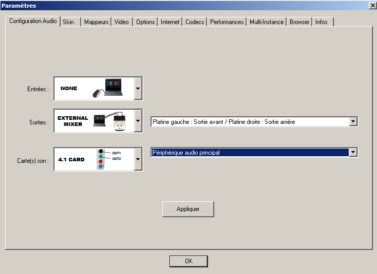 Vu que vous possédez une carte son 5.1 ,voici le paramétrage dans VDJ , a la place de "Périphérique Audio Principal "