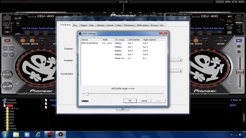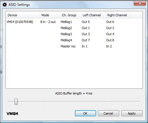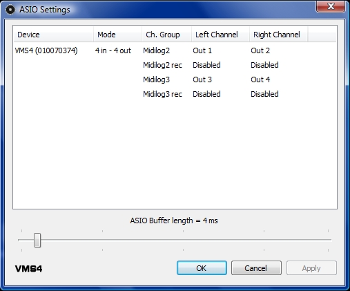 Komm ich jetzt nicht mit .... O.o . Sorry. Wenn du alles genau so eingestellt hast wie oben ( Asio settings,firmwareupdate ) läuft die VMS 4 einwandfrei