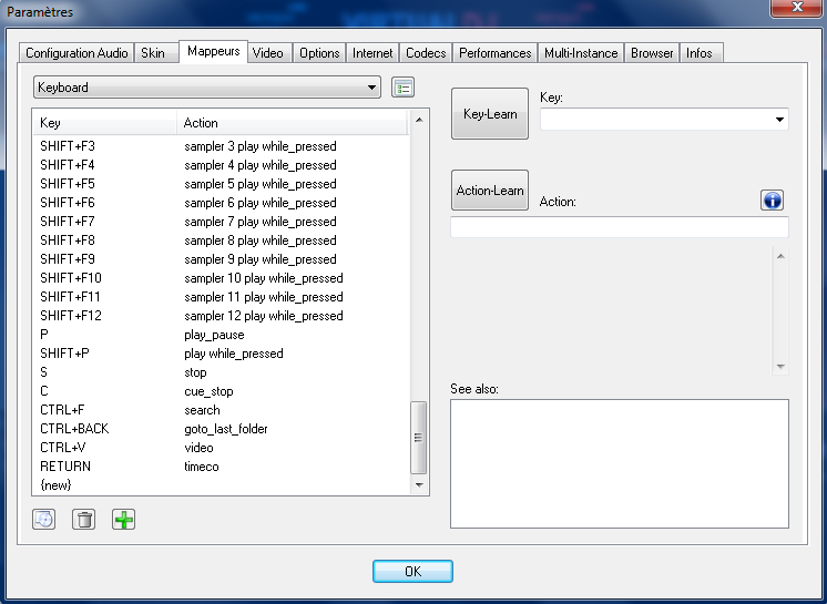 Par exemple, presse donc KEY LEARN, ensuite presse une des 6 touches sur ta RMX et si tu veux mettre un sampler automatique sur cette touche tu met dans ACTION LEARN le mot suivant : SHIFT+F5 (ce qui vas attrivuer le sampler numéro 5 à ta touche) voili voilou