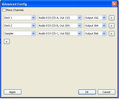 avec ma carte son Audio 8 DJ, dans la configuration audio de vdj -->Avanced config, (le son ne sort pas du Deck 2)