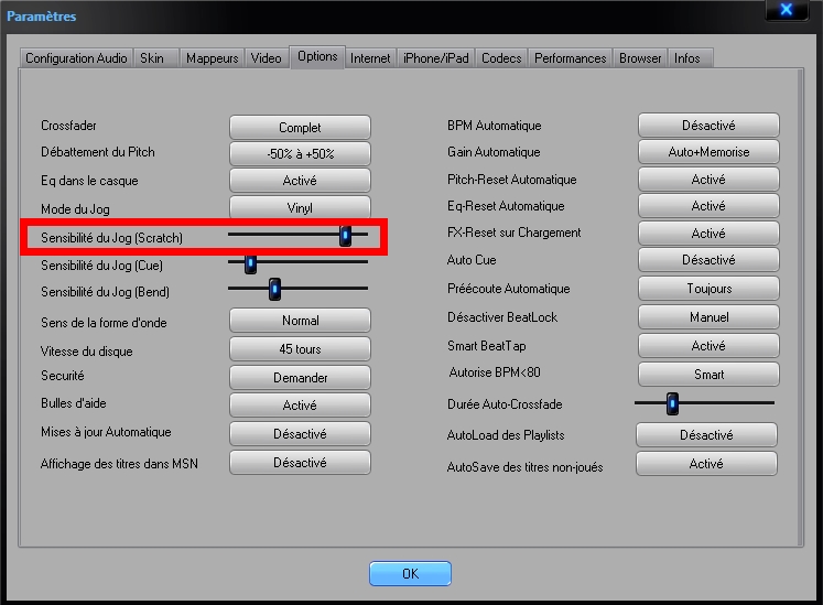 j\'ai augmenté la sensibilité du jog (scratch ) d\'une valeur entre 320 et 380% pour imiter la présence de ce capteur
