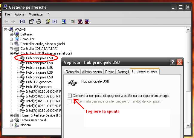Se magari usi solo la RMX e hai lasciato di default le impostazioni di Windows le USB vengono disattivate e non mi meraviglio si blocchi tutto, come vedi sotto togli la spunta su tutti gli HUB USB che hai nel pc.