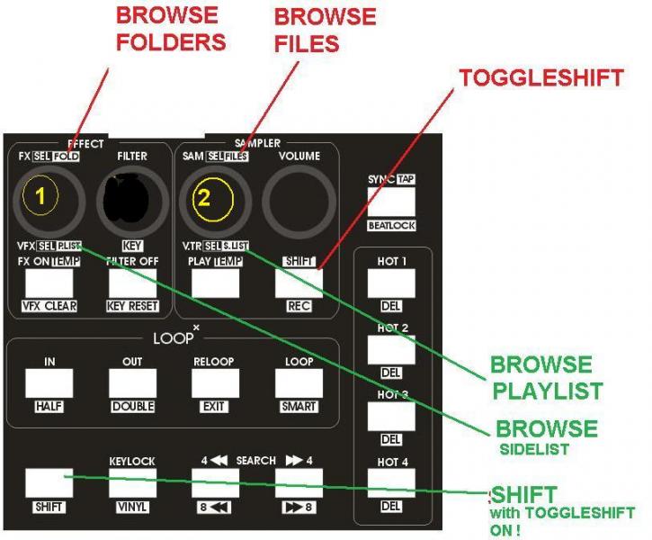 So when you activate the TOGGLESHIFT (browser mode) the selectors 1 and 2 are browsing the folders and the Files.