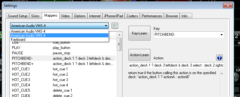 Hello, Dj Dad, I am a user who bought the Italian vms4 and I followed your forum to set it at its best, but I can not move from deck 1 to 3 and 2 to 4 with the pitch bend I put your full pro mapper but when I press the button on the pitch does not give me no effect to work decks with 3:04 must click with the mouse on the play deck by the software and that's not good, how can I do to be able to use 4 decks directly from vms4 ? thanks ....!