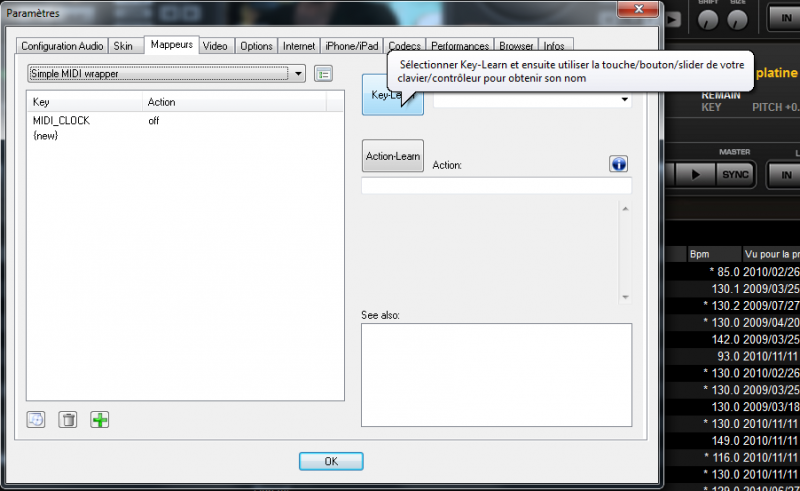 ensuite dans la case action en dessous d'Action-learn tu tape sample 1 play_stop si ça fonctionne tu pourra mapper le reste des samples en reprennant sample x play_stop en remplaçant le x par le chifrre 2,3,etc.. jusqu'a 12 et plein d'autre action dans vdj a l'aide du ->VDJscript verbs in VirtualDJ v7.0.1<-