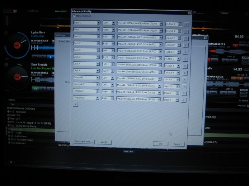 oh .. and one more note .. with this config you MUST have your time code running at all times .. if you click it off for a wedding or some other gig it is not needed .. your sound breaks up and sounds like you have a bad RCA cable .. I guess if you really want to turn time code off you need to delete them in the sound set up.
