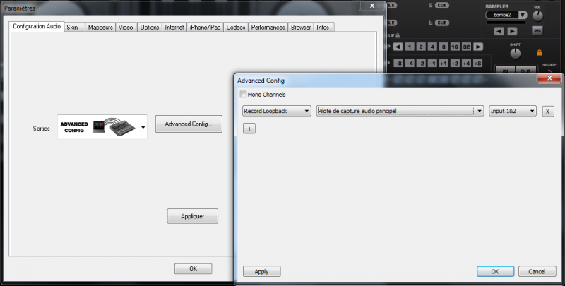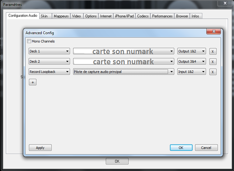 il faut également indiquer a quelles sorties audio sont attribués Deck 1 ,2,3,4 ,..... samples , etc... pas uniquement le record loopback .