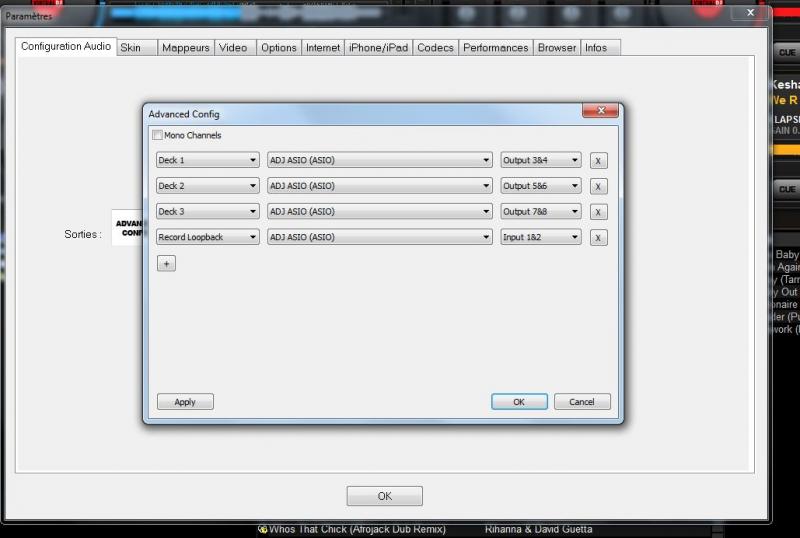 Oui Jérome j'ai le son de mes 2 decks sur ma table, j'ai même fait le test en les enlevant de l'advenced config et c 'est bon mais impossible d'enregistrer, j'ai mis exactement la config qu'il faut et essayer plusieurs combinaison comme Happy apparemment mais la préécoute s'entend !!