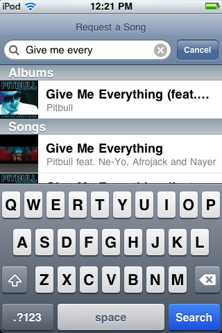I would love to be able to search my DB for a song from iRemote. Browsing is ok, but kind of cumbersome and would be much easier done from the PC. Doing a quick search to see if you have a particular song and then adding it to the play list would be the main reason to use it remotely, for me anyway.