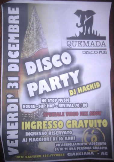 Mi trovate al "Quemada Disco Pub" presso i locali de "La Torretta" a Cianciana (AG).