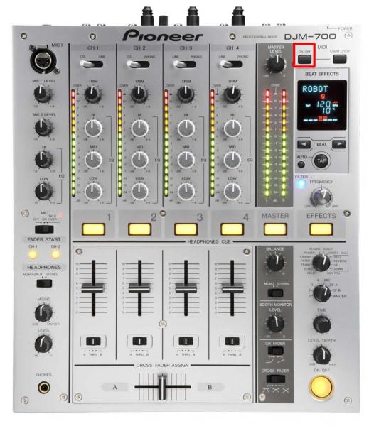 J'ai la DJM 700. Le bouton "start/stop" permet de rétablir et/ou vérifier le signal midi envoyé/reçu. Logiquement, tu as un bouton "on/off" qui permet de couper la fonction midi.