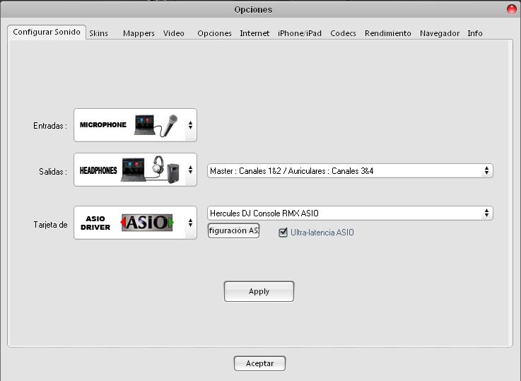 Hola tengo configurada con la tarjeta de audio hercules y en salida headphones