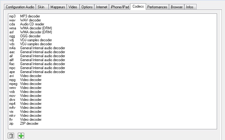 Pour information tout est indiqué dans VDJ même ,-) et on peux ajouter des nouveaux Codec si besoin !