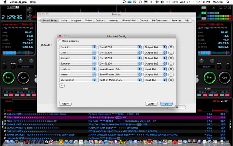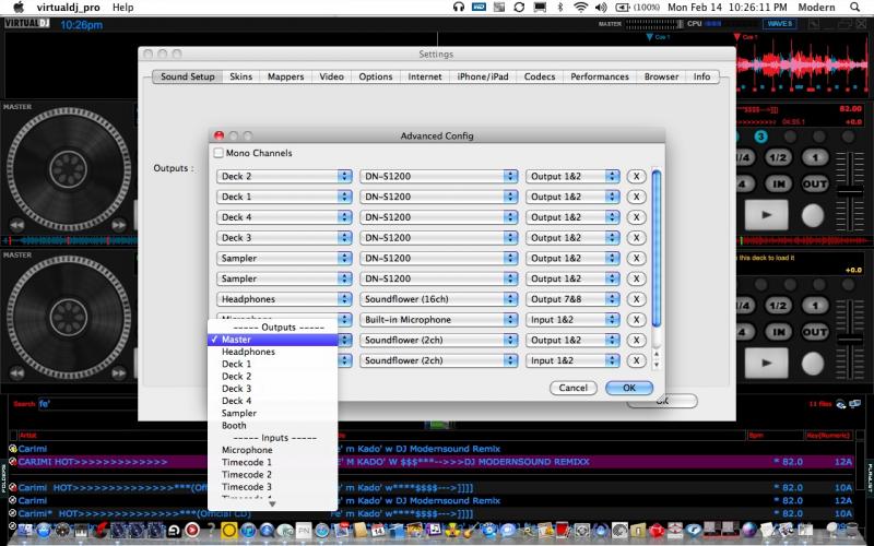 3. Open Virtual DJ Pro 7 and go to Outputs Advance config. add those audio channels like in this pic