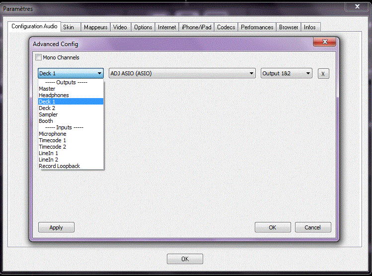 pouvez-vous m'indiquer quels réglages je dois utiliser dans la configuration audio de virtual DJ 7 svp.