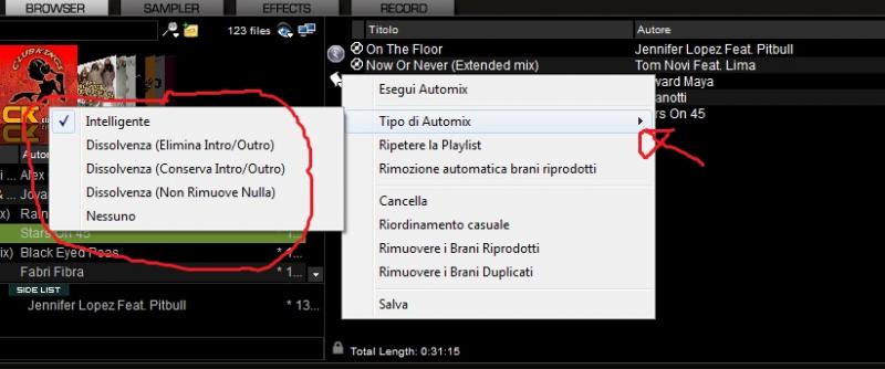 ora è possibile segliere il tipo di automix tra quelli predisposti cliccando sul simbolino bianco sotto al tondino