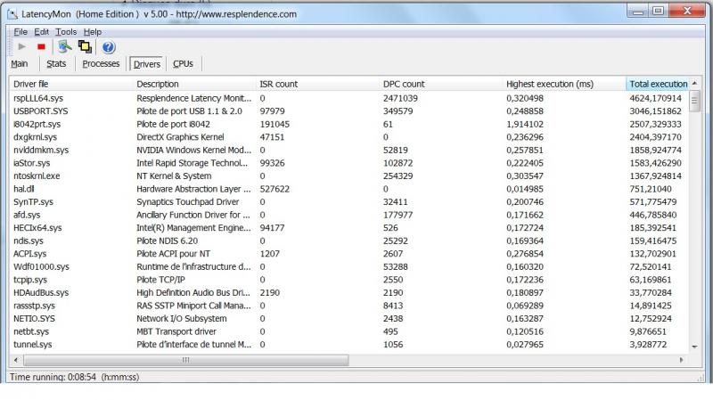 Drivers : la partie la plus intéressante qui est la consommation en DPC et ISR des drivers en cours d'utilisation