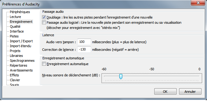 Je n'ai toujours pas résolu mon problème. Même en faisant au plus simple, configuration normal avec master sur audcity ça ne donne rien.