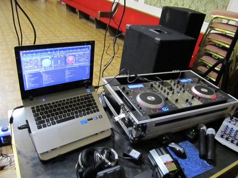 lo primero que compre ( por consejo del vendedor del Guitar Center ja ja ), fue una Numark mixdeck trabaja bien, tambien adquiri el virtual DJ con una macbook pro y tengo tambien una mix consola de 4 entradas y 4 salidas donde conecto las bocinas y los microfonos, con volumentes y equalizacion independientes.