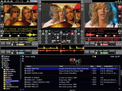 ci sono 4 decks, assegnabili a 2 a 2 al crossfader (audio e video con slider spezzato)