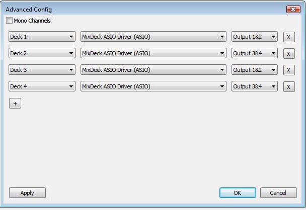 Now to here all "4 decks" you must open up the Advanced Config screen and set it up like this,