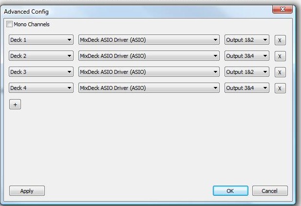 Heres my map, http://www.virtualdj.com/addons/13334/MixDeck_x4__Video.html and this is how it should look in the advanced config,