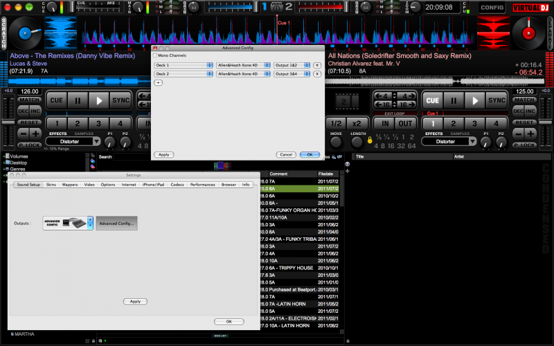 Hello, my VDJ is not recognizing the NI audio 8 or Allen & Heath zone 4d audio cards. I get "invalid advanced audio configuration" followed by not being able to close VDJ and the wheel of death. It worked great before, but just stopped working recently. I believe the problem is with VDJ since all my other programs including Logic, Traktor, Itunes and so forth recognize the audio cards with no problems. VDJ will pass audio through the headphone out. I originally used 7.0.2 and recently upgraded to 7.0.5 with the same error: however ; the problem started on 7.02. Any suggestions would be greatly appreciated!!