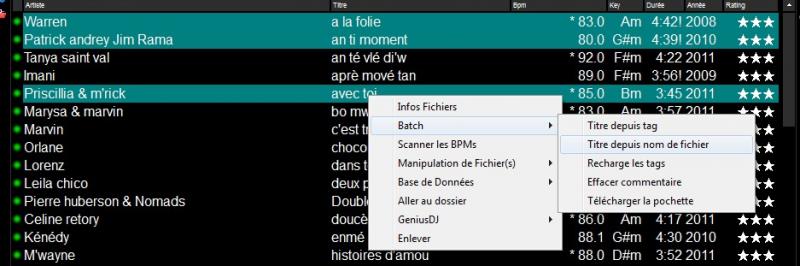 ou encore clic droit sur un titre -> infos fichier et tu tapes le nom, titre années dans les cases etc.. puis clic sur le bouton > flèche Tag