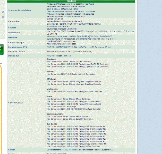 processeur : intel core 5TM) 2 duo CPU E7300 2.66Ghz