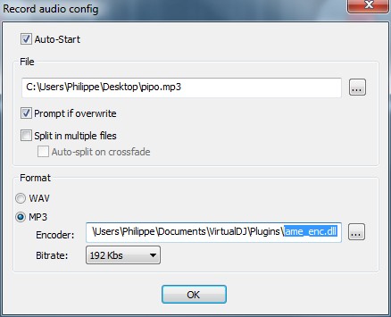 Répertoire --> [C:\\Users\\xxxx\\Documents\\VirtualDJ\\Plugins\\lame_enc.dll]