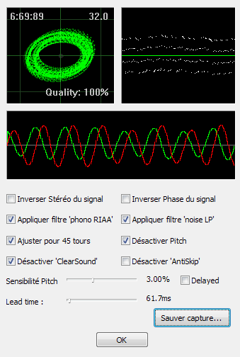 les réglage sont a peut près bon (je pense) mes signals reste a 100% sauf quand je manipule le vinyls il baisse mais c'est normal...