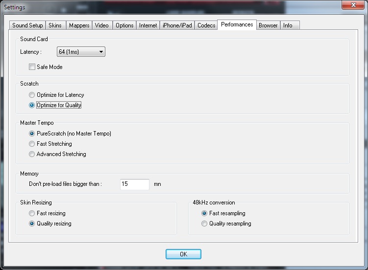 Je te conseille aussi de remonté un peu en latence, tu es à 1ms, tu pourras t'y remettre quand tu sera sur que tes réglages seront bon car sa consomme plus de ressource ainsi que le master tempo.