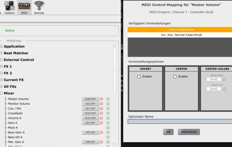 hatte mir MixvV in der Demo runtergeladen, leider nur 1.7.0 für Mac das Richtige Mapping ist wohl in der 1.7.1 !!!