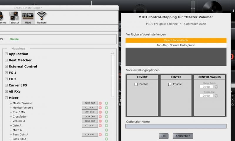 ich hab da mal nen screenshot von cross gemacht wo man das mapping anpassen kann