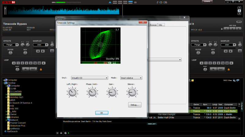 I know there have been dozens of threads posted, but none of them have helped me clearly understand how to set up timecodes with the CD's burnt from this site in Virtual DJ Pro 7. As mentioned I have Pro, Im using a Hercules MK4 MIDI controller as my 2 channel mixer and a Numark NDX 400 as my right deck CD Player. I do not have any idea how to play MP3's on the Timecode instead of the timecode sound. Also I dont know how to play the MP3's over the timecode so that I can scratch them. And as you can see VDJ 7's configuration menu is different than the one that was talked about in those old threads. Thanks