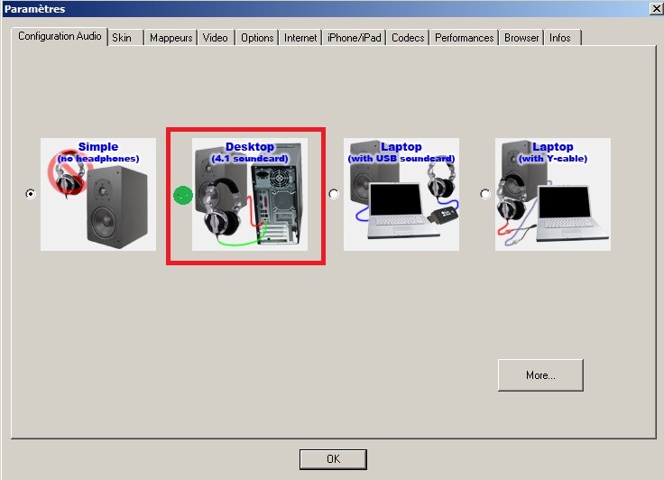 3) sinon tu peux faire une autre configuration, mais il faut clique sur bouton More comme c'est indiqué sur la première image