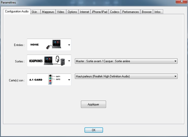 sa serait possible d'avoir un imprim ecran de votre configuration carte son, et aussi de vdj, ainsi qu'une photo du panneau arriere avec les branchements.