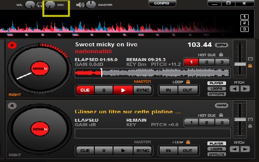 cela doit venir du Headphone qui doit être a 100% sur le skin 2 deck, on va essayer de le mettre a 50% ou 0%