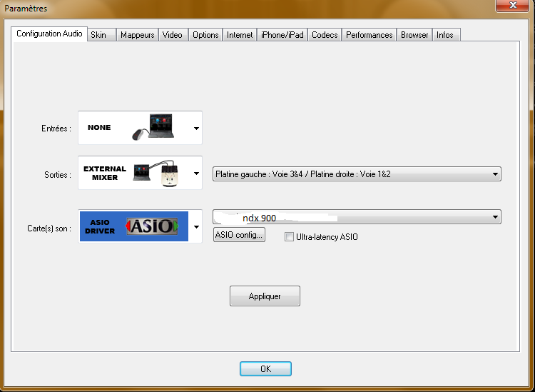 Deck1 : ASIO ou/et CARTE SON (CDX900 platine de gauche)