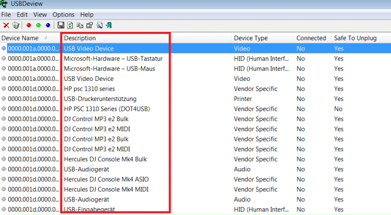 Und zwar möchte ich gern bei "usbdeview" den VMS 2 finden und rasus löschen da mein PC ihn nicht erkennt aber mein laptop schon , ich denke ich hatte zu viel am PC , das daher das VDJ Pro Full es nicht erkennt und die VMS 2 LE Version auch nicht.