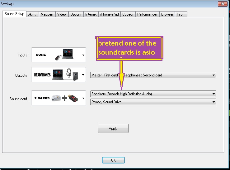 So bottom line, user needs to create an Advanced Sound setup to deal with multiple outputs, which of course is available only in Pro Full version.