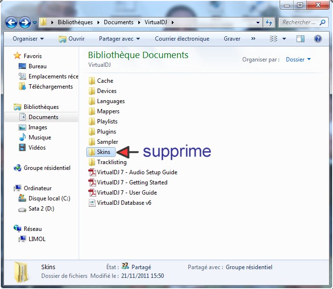 (Le dossier Skins est un dossier en jaune il faut le supprimer et réinstaller VDJ sans que toi tu ajoutes d'autre skin)