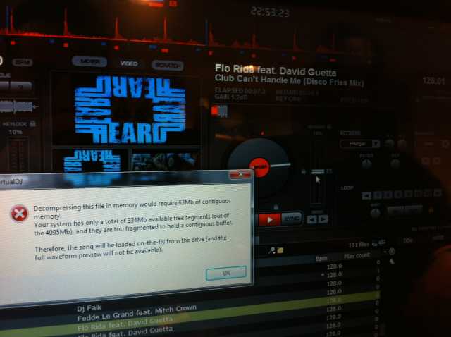 Here is an update. It's still doing it. Im still getting the Contiguous Memory Msg and video freezing intermittently. I need help im not very computer techie. I have been using CUE & VDJ for years and never had this much trouble please help.
