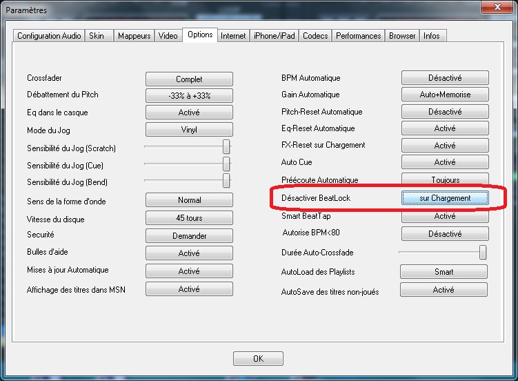 Celà existe déjà dans les options mais je ne pensais pas à regarder puisque je pensais que je cherchais ce qui correspondait au BeatMatch et pas au BeatLock :
